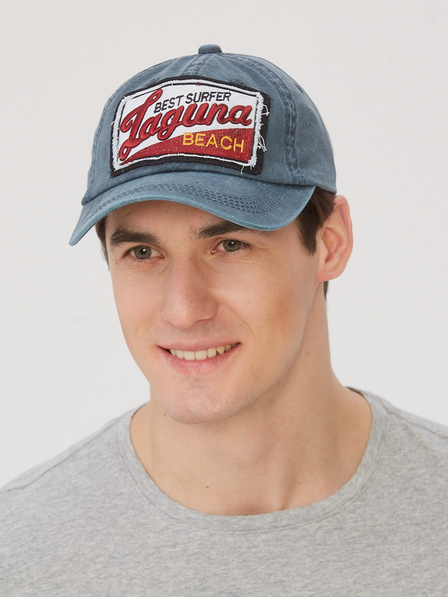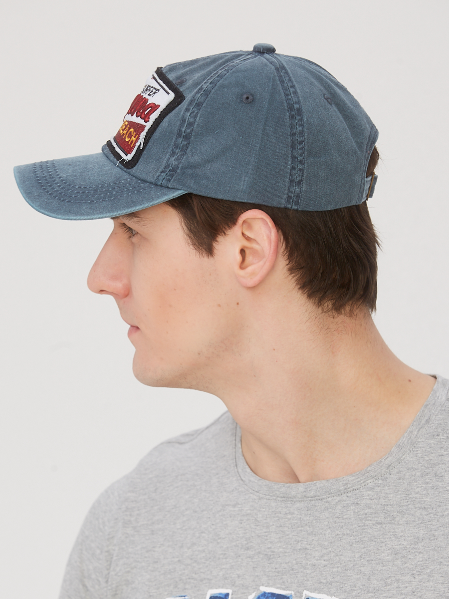 Стильная бейсболка из вареного хлопка с эффектом искуственного старения (потертости, необработанные срезы на аппликациях). В связи с технологией крашения возможны участки с различной интенсивностью цвета.