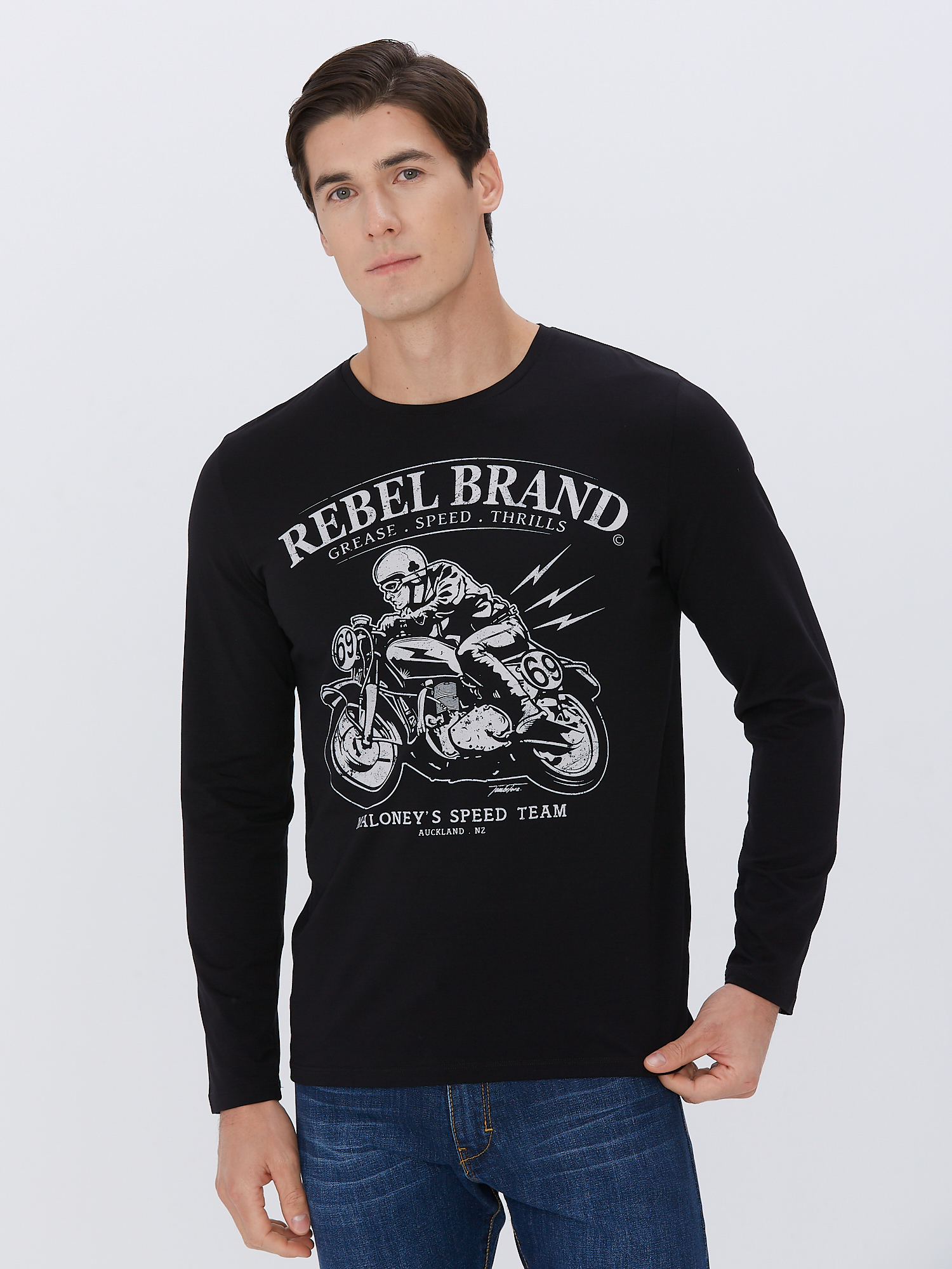 Мужской лонгслив JLAB из качественного плотного трикотажа (хлопок высшего качества пенье с добавлением эластана для комфорта). Прямой комфортный крой. Усиленный плечевой шов.