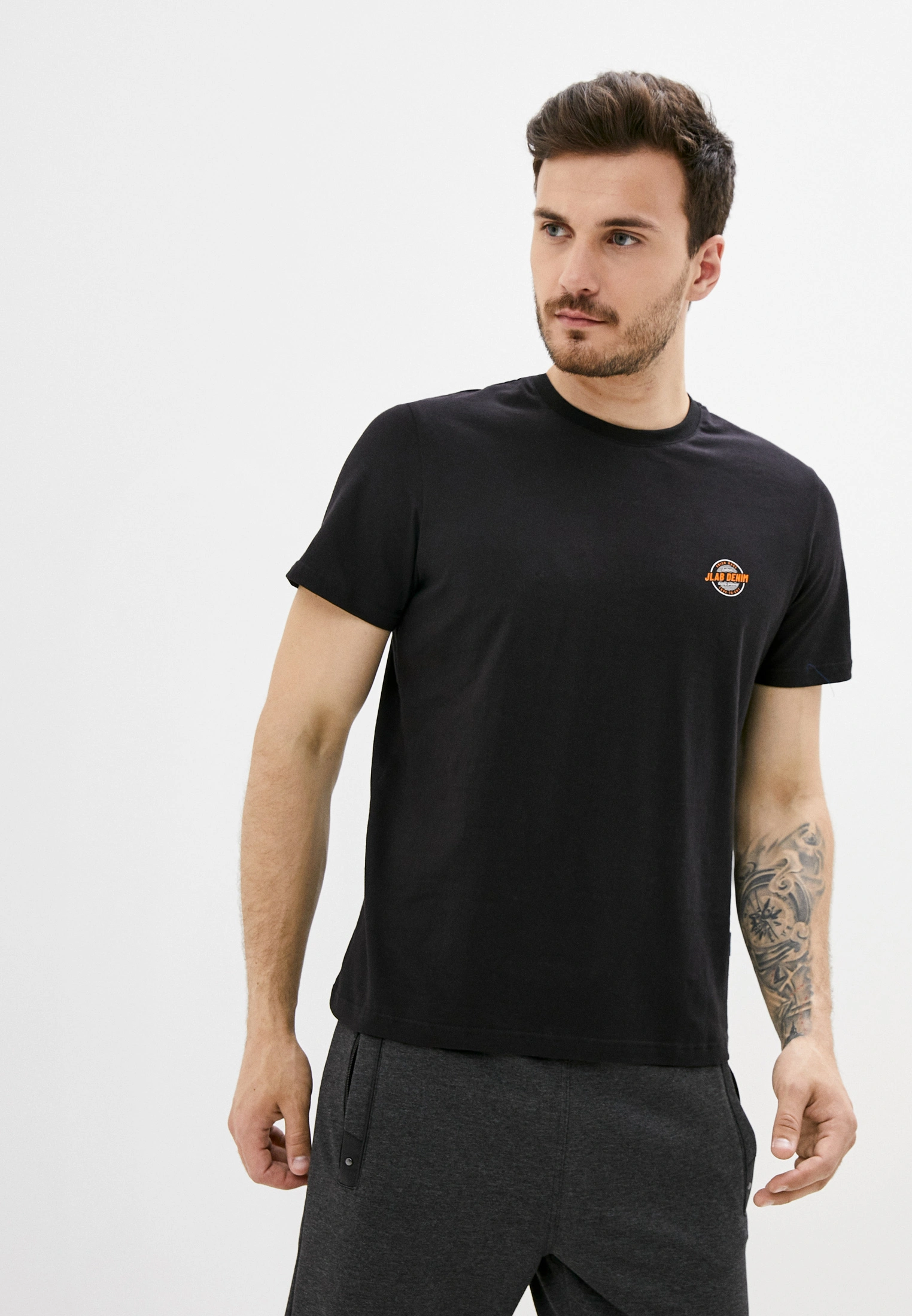 Мужская футболка JLAB из качественного плотного трикотажа. Прямой комфортный крой. Усиленный плечевой шов.